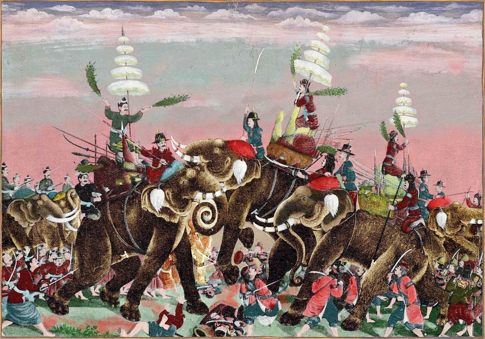 また、かつてタイでは他国との戦争時、王は象に乗って戦いに臨みました。象は王を守り先頭を切って戦う、勇気と誇りの象徴ともされています。